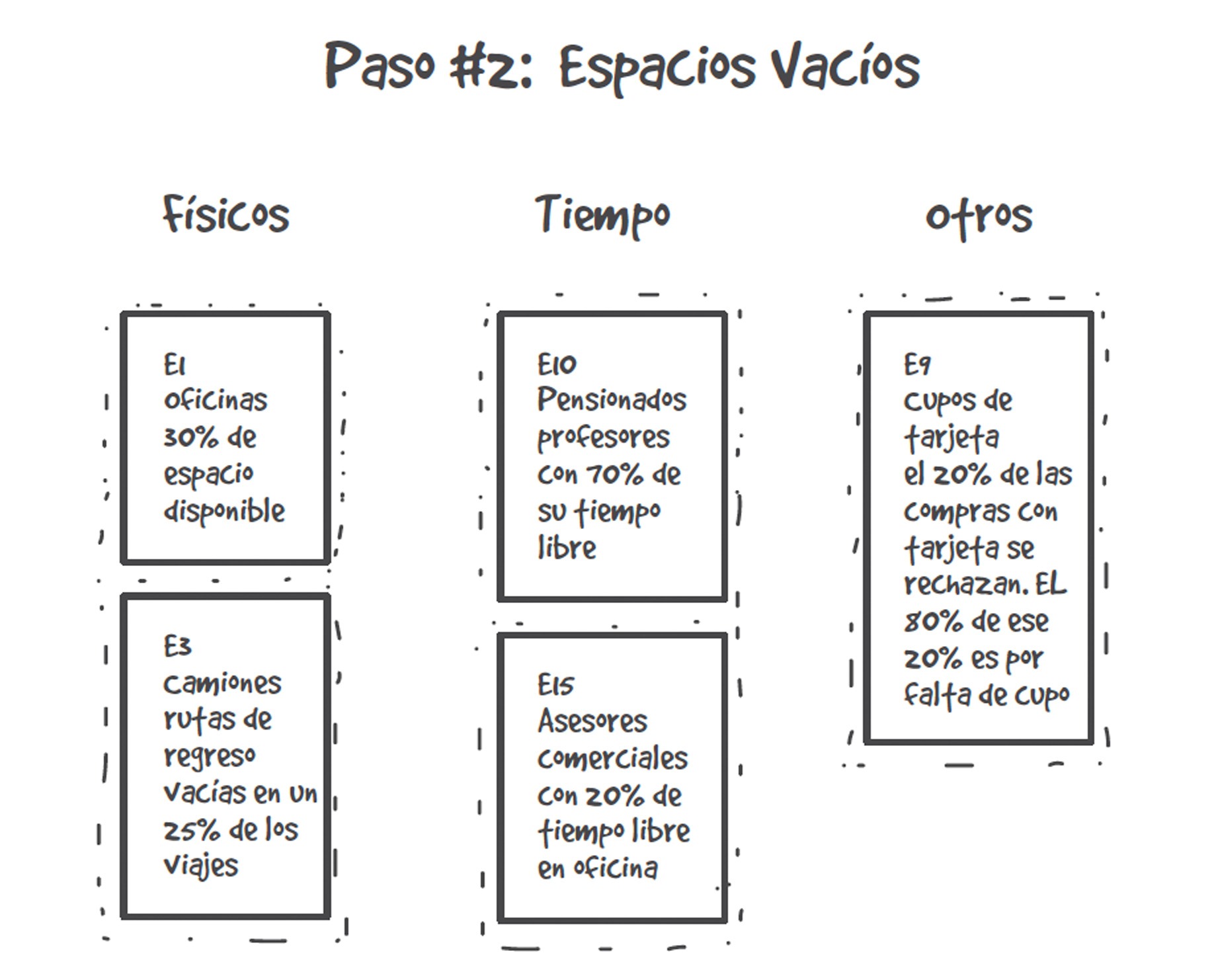 Además de estos espacios físicos, podemos buscar espacios vacíos en el tiempo disponible de nuestros colegas en la empresa o de nuestras propias vidas. Muchas veces, desperdiciamos tiempo con las redes sociales, la televisión u otras actividades que no nos aportan valor. En la medida que disminuyamos esas actividades, vamos a ir generando espacios vacíos que podemos utilizar.